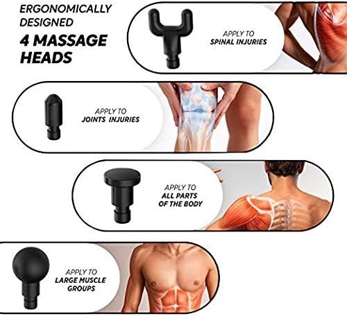 Massage Gun-এর সাথে থাকে বিভিন্ন ধরনের ম্যাসাজ হেড, যা পেশীর ধরন ও অবস্থান অনুযায়ী পরিবর্তন করে ব্যবহার করা যায়।